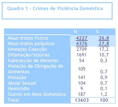 Se acedermos ao sítio da Associação de Apoio à Vítima, podemos ter acesso a números sobre a violência doméstica, por exemplo aqui, podemos encontrar este quadro: