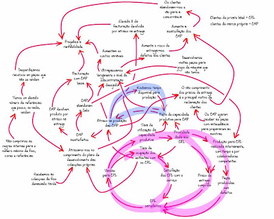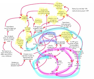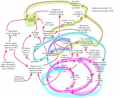 O autor propõe que se faça a cartografia dessas linhas de forças: "Map the driving forces. Mapping is a visual, iterative tool for discovering the root cause of a phenomenon affecting your company." (ainda não cheguei lá, mas já estive mais longe dessa opinião - ver a última ilustração deste postal)
