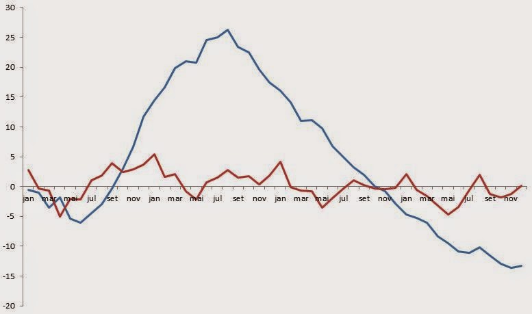 Primeiro, uma descrição da evolução económica espanhola que emula de muito perto a evolução portuguesa. Consumo privado a crescer mais de 2% em 2014 (2,2% em Portugal), as lojas registaram a melhor época de Natal desde o início da crise (em Portugal) e as vendas de carros cresceram 18% (34,8% em Portugal), tudo isto em ambiente deflaccionário desde Agosto de 2014.