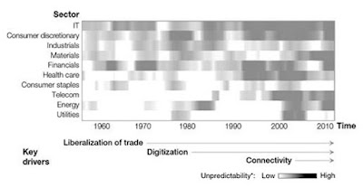 Num dos capítulos do livro os autores apresentam esta figura acerca da evolução em cada sector da imprevisibilidade: