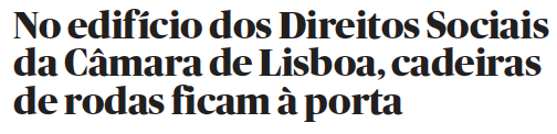 No edifício dos Direitos Sociais utentes com cadeiras de rodas ficam à porta, mais, alguns trabalhadores do serviço que andam de cadeiras de rodas tiveram de mudar de serviço ou passar a trabalhar de casa. Acham mesmo que o estado consegue pensar a longo prazo?