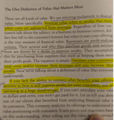Se o negócio é B2B acredito que se aplica o que está sublinhado na figura. E, por isso, faz todo o sentido evoluir para um value-based pricing que considere todo o ciclo de vida do produto nas mãos do cliente. Por exemplo, o fabricante de polímero que vende o seu material mais caro por demonstra ao cliente que ele produzirá mais por unidade de tempo. Por exemplo, o fabricante de máquina de espuma que vende a sua máquina mais cara porque demonstra ao cliente que produzirá mais espuma e com menos desperdício por unidade de tempo.