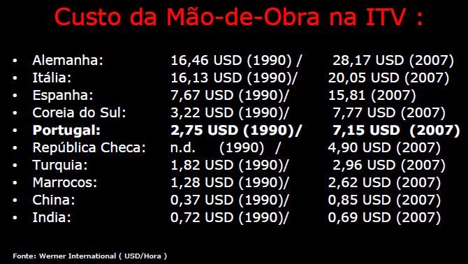 Não é só o governo, esta é a via do grupo encalhado no modelo mental a que chamo de tríade. Por exemplo, esta é a via de quem, como Ferreira do Amaral, quer sair do euro e viver da ilusão monetária. Os membros da tríade vivem, eles próprios, numa ilusão, a ilusão de voltar ao tempo em que a desvalorização da moeda nacional resolvia os problemas de competitividade... esquecem-se é que nesse tempo não havia a fortaleza China. Nunca esquecer esta tabela: